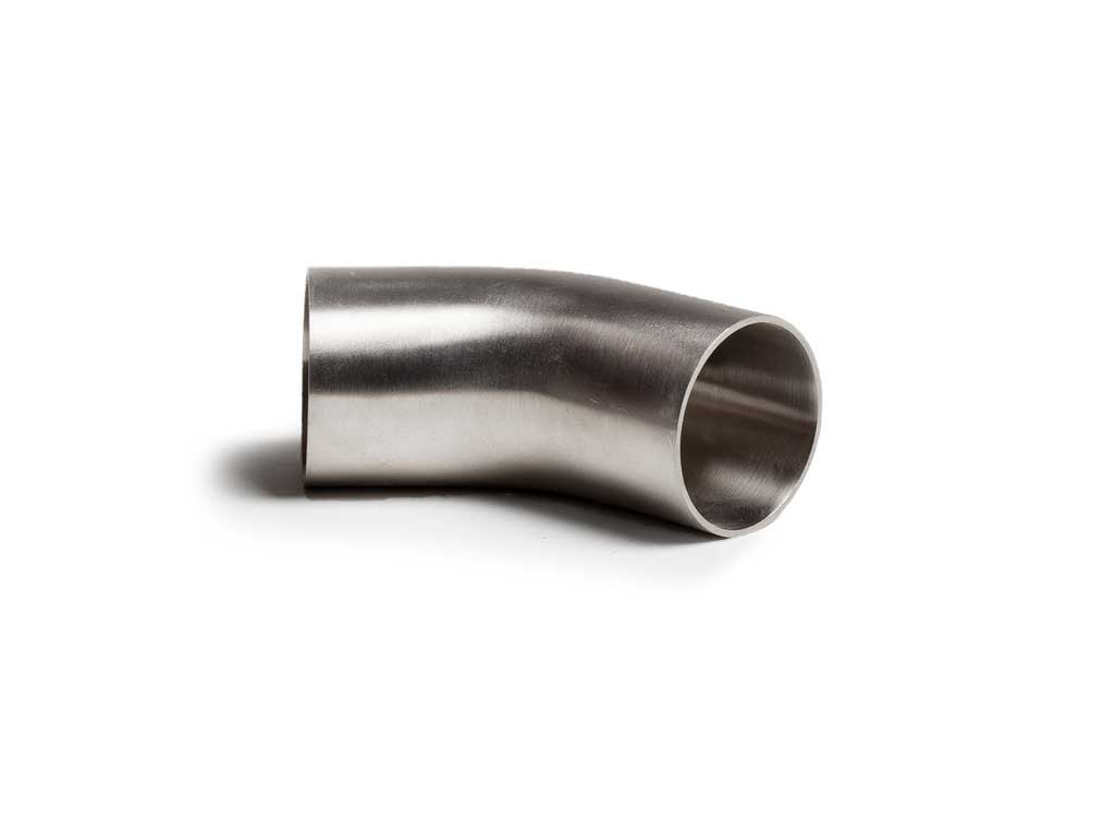 DIN-böj 45° är en svetsrördel som används för att skapa hållbara och hygieniska anslutningar. Särskilt inom livsmedels- och läkemedelsindustrin.